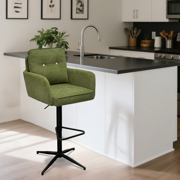 집에 거친 산업 분위기가있는 경우 레트로, 노화 된 디자인이있는 바 의자를 선택하십시오. 짙은 색의 직물 (짙은 갈색 또는 숲 녹색) 또는 금속 리벳 또는 거친 주철 프레임이있는 스 플라이 싱 된 가죽은 즉시 독특한 산업 분위기를 조성 할 수 있습니다. 이 스타일의 스타일 뒷면이있는 직물 바 의자 종종 강한 존재를 가지고 있으며 방에서 시각적 초점이됩니다.