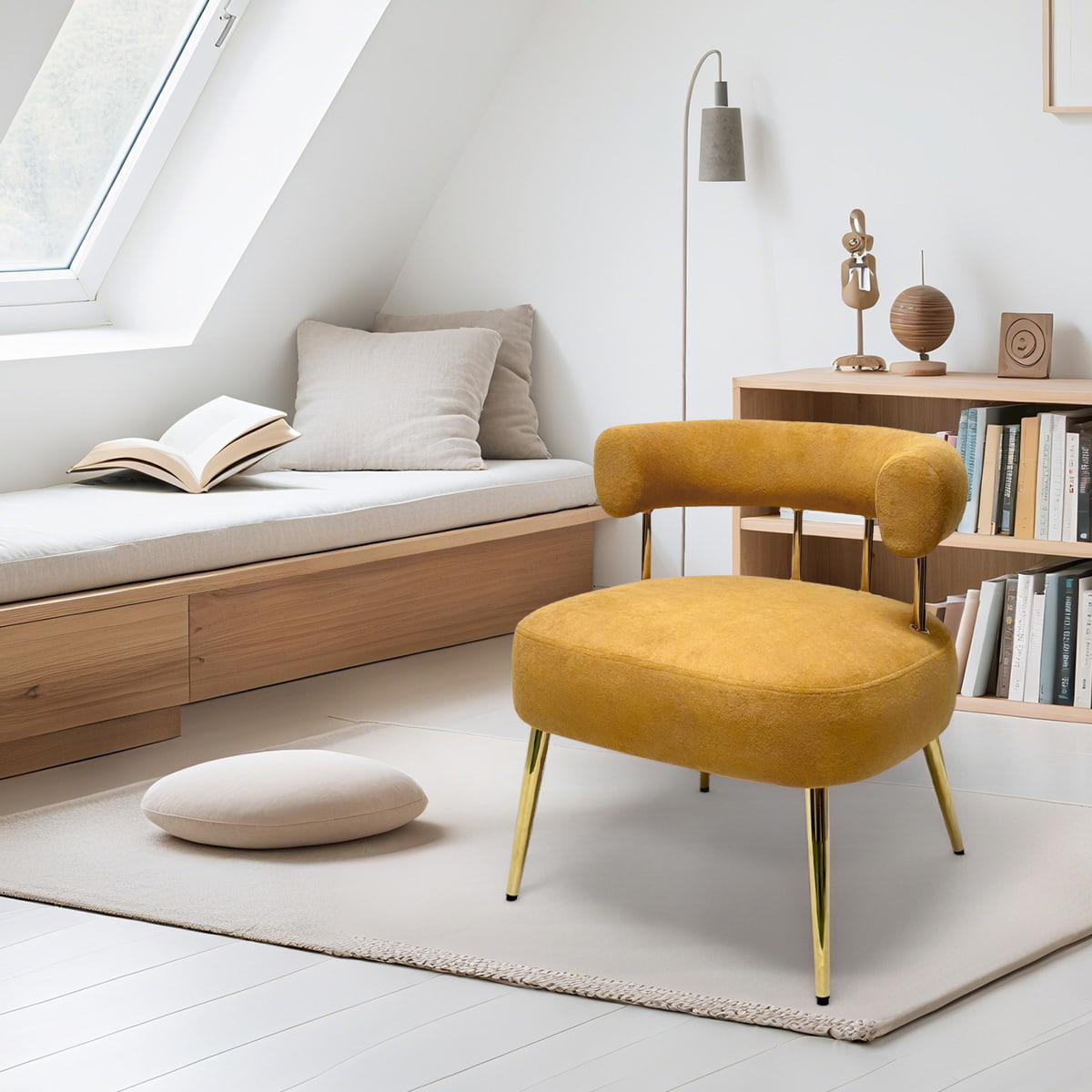 골든 레그 벨벳 배럴 액센트 체어 - 와이드 시트 미드센츄리 모던 다이닝 & 라운지 체어