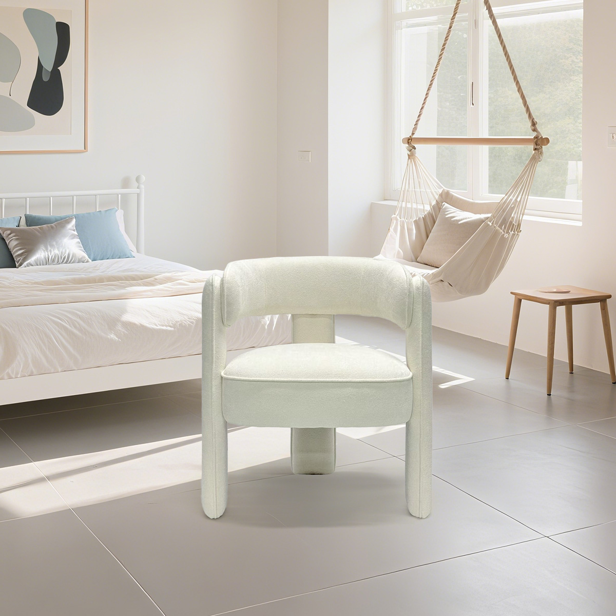 등받이가 열려 있는 현대적인 흰색 부클 배럴 악센트 의자 – 덮개를 씌운 식당 및 거실 안락 의자